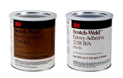3M™ Scotch-Weld™ Epoxy Adhesive 2158 is a rigid, multi-purpose, two-part high strength adhesive that chemically cures at room temperature. This equal mix ratio (1:1) epoxy has a 2 hour work life, allowing time for adjustments and positioning of substrates and parts. It reaches handling strength in approximately 10 hours and fully cures in 7 days. With a relatively high viscosity this epoxy dispenses easily to ensure a controlled, precise and accurate application that won't migrate. Once cured this adhesive provides a rigid bond with high shear strength to deliver better dead load holding. This product can be used in a wide range of industries including: general industrial, metalworking, construction, military, transportation and aerospace.