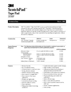 Additional Product Information: No Dispenser? No Problem! 3M™ Tape Sheets 3750P have a durable polypropylene backing that is strong and conformable. The pressure sensitive hot melt rubber resin adhesive is formulated to provide good adhesion to a wide variety of surfaces including bags, boxes, plastic film, metals and glass. For easy one hand application, simply peel away the back sheet and place the pad on a vertical or horizontal surface. Recommended Applications • In-field repair of damaged packages • Shipping label protection • Miscellaneous packaging applications Portable and Lightweight for Convenient Use With peel and stick convenience, 3M™ Tape Sheets 3750P are perfect for in-field repairing, patching and mending, avoiding costly returns and product re-work due to damage sustained in the supply chain, from plant to retail store. Bringing Better Ideas to the Surface through Science and Innovation In our 3M Industrial Adhesives and Tapes Division, we apply the science of adhesion to deliver innovative solutions that improve the design and manufacturing processes of companies around the world. In the end, our technologies help customers like you deliver competitive products to the market faster and more efficiently.
