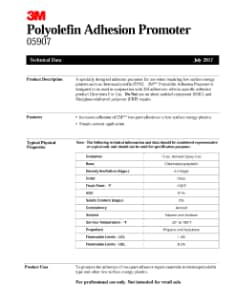 3M™ Polyolefin Adhesion Promoter 05907 ensures strong adhesion when repairing PP, EP, TPO or EPDM substrates with a number of 3M products including 3M™ Flexible Parts Repair Kit 05895, 3M™ EZ Sand Multi-Purpose Repair Material 05887, 3M™ Semi-Rigid Plastic Repair 34240, 3M™ Semi-Rigid Plastic Repair 04240, 3M™ Super-Fast Repair Adhesive 04747 and 3M™ Super-Fast Plastic Repair 04247. Our product may be used for the repair of polypropylene and ethylene propylene interior and exterior parts.