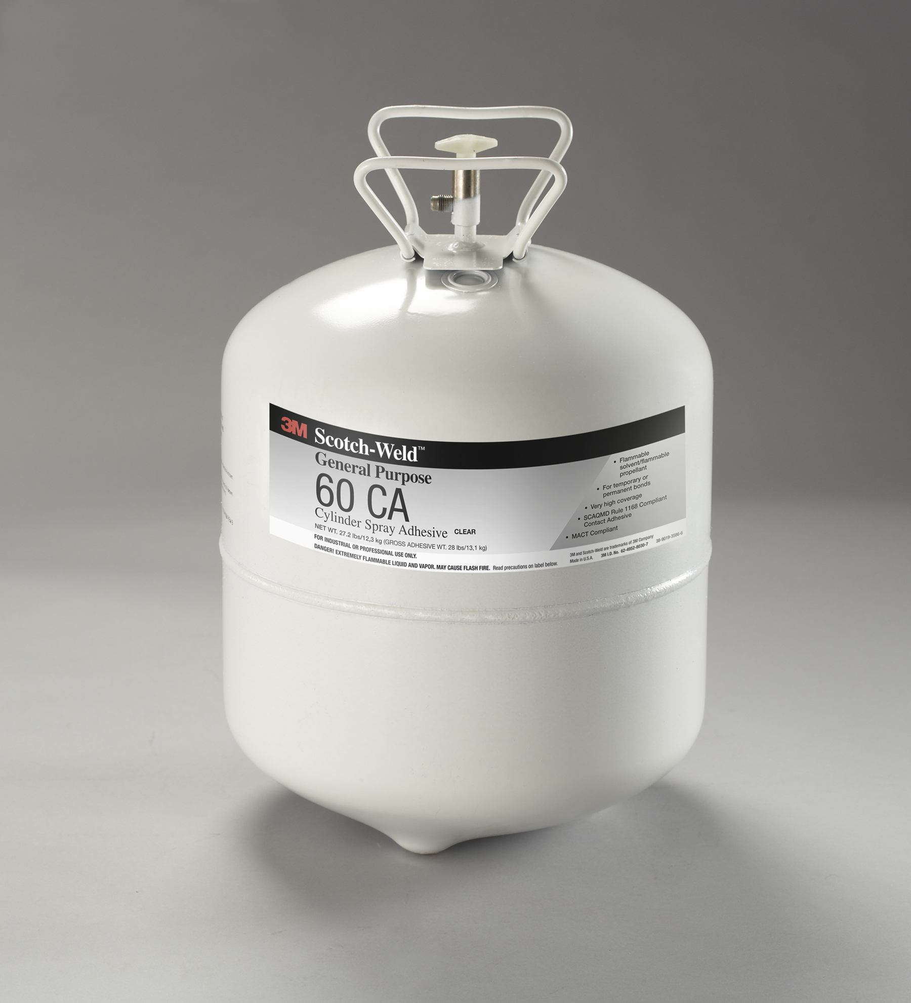 Formulated as a high-solids spray adhesive, 3M™ General Purpose Adhesive 60 offers a reliable hold and bonds to a variety of substrates. This adhesive was designed to deliver high coverage at a low price. Our 3M™ General Purpose Adhesive 60 is also fast tacking for immediate handling, sticking reliably in a matter of minutes. In addition, this product is available in bulk containers, including barrels and drums, and its canister version is portable for easy transition and setup for multiple stations or field work.