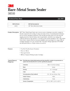 Additional Product Information: A Tough, Durable Seam Sealer… Our 3M™ Bare Metal Seam Sealer forms a durable seal to overlapping sheet metal with no shrinkage, cracking or outgassing - and lets you apply it efficiently and cost effectively. The heavy bodied sealer is formulated specifically to adhere consistently to properly prepared bare metal, such as steel or aluminum enclosures, in collision repair. It is non sagging and non flowing, making it easy to apply and tool to shape, for the most effective seal and to recreate the OEM seal appearance. It also contains chemical corrosion inhibitors to help prevent rust. This sealer cures in as little as 15 minutes for efficient shop time, and is fully paintable using any automotive paint system. Its neutral beige color can make painting easier and require fewer coats vs. a darker colored sealer. That’s Also Easy to Use This sealer dispenses from a dual syringe cartridge - it accurately self mixes to deliver the strength and adhesion of a two part epoxy system without the added time and guesswork of mixing. You get the right mix ratio for individual jobs, and consistent strength and cure speed every time. 3M™ Bare Metal Seam Sealer can be caulked with 3M™ OEM Seam Sealer Tips including 08201, 08202, 08203, 08204 and 08205. It can also be used effectively on primed or painted metal surfaces.