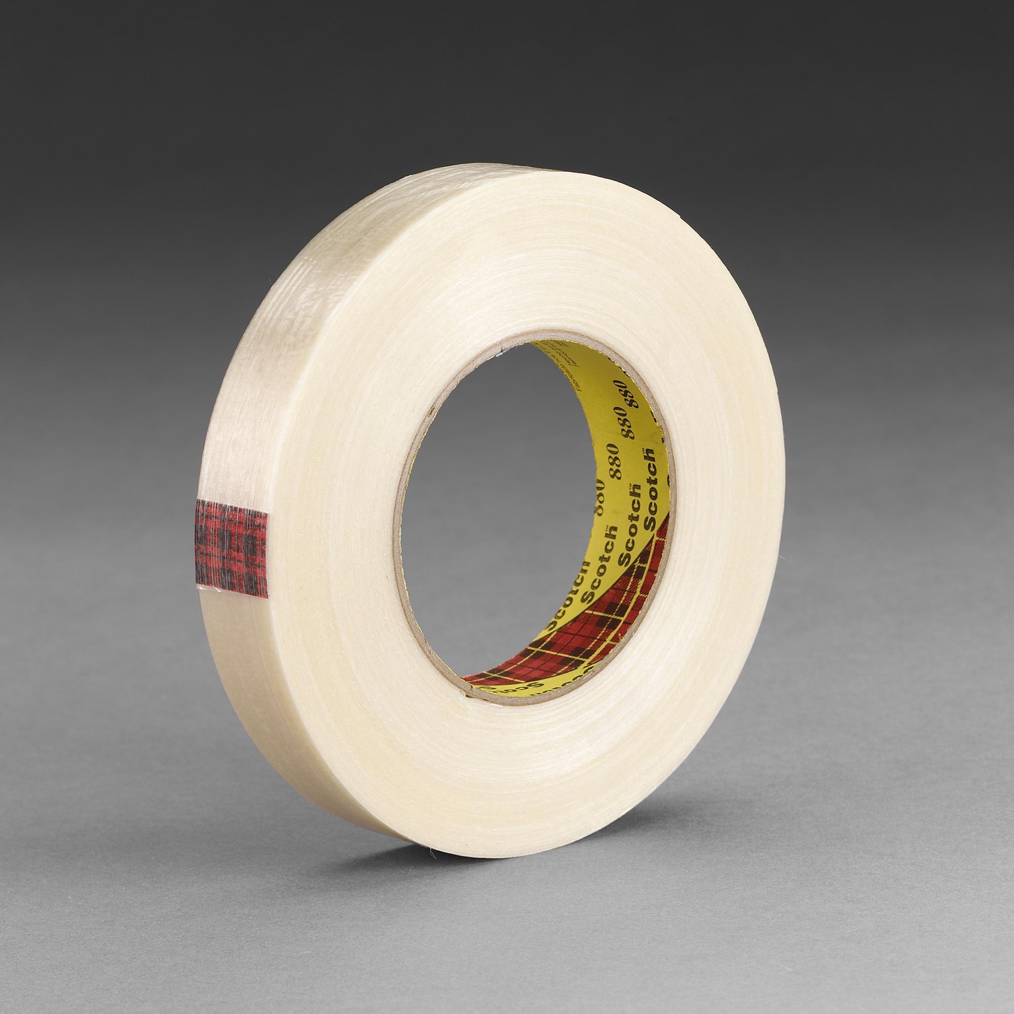 Additional Product Information: Excellent Shock Resistance With polyester reinforced yarns, Scotch® Filament Tape 880 provides added strength and elongation for metal splicing, rebar and pipe bundling. This filament-reinforced tape has a polypropylene backing that resists impact, abrasion, moisture, scuffing and breaks, even if nicked or punctured. This sturdy tape dispenses easily without curling for easy application and its multi-layer synthetic-rubber adhesive system prevents delamination. The synthetic adhesive bonds well to most fiberboard, plastics, painted, printed and non-oily metal surfaces. Recommended Applications • Pipe and conduit bundling • Metal splicing and coil tabbing • High strength reinforcing • Heavy duty strapping The World’s Go-To Source for Filament Tapes Since 1946 3M's line of filament-reinforced tapes and strapping tapes are high strength, reliable and affordable solutions that give you product and package integrity. For closing boxes, stabilizing pallets, bundling and reinforcing; securing appliance components during transport and easy-open tear strips, our high strength tapes provide important benefits for manufacturers of piping, metal products, furniture, appliances, automotive parts, sporting goods, as well as food and beverage processors.