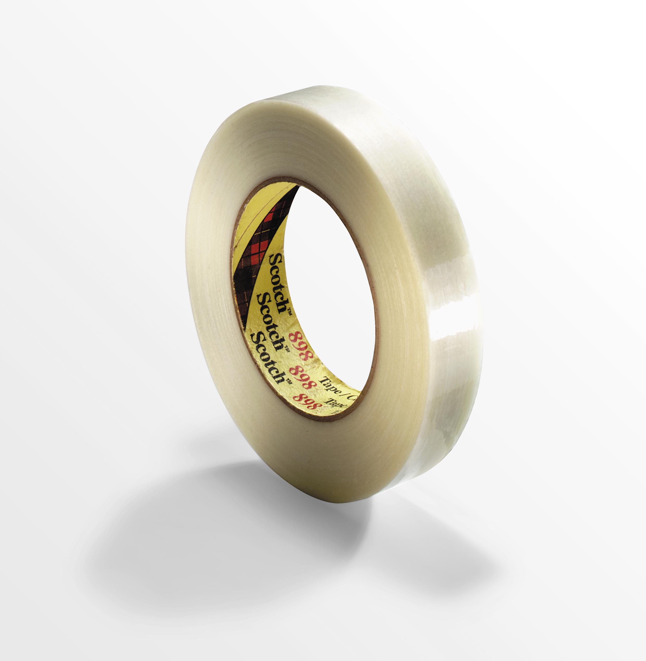 Additional Product Information: Strong, Sturdy Design With an increased tensile strength, Scotch® Filament Tape 898 provides an excellent solution for full overlap L-clip box closures, bundling pipe or reinforcing large bulk containers. Constructed with a clear, filament-reinforced, polypropylene backing, this tape is abrasion, moisture, scuff and break resistant, even if nicked or punctured. This sturdy tape dispenses easily without curling for easy application. Its multi-layer synthetic-rubber adhesive system prevents delamination. The synthetic adhesive bonds well to a variety of surfaces commonly used in packaging, such as corrugated cardboard, fiberboard, plastic and metals. Recommended Applications • L-Clip closure • Metal and pipe bundling • High strength reinforcing • Heavy duty strapping The World’s Go-To Source for Filament Tapes Since 1946 3M's line of filament-reinforced tapes and strapping tapes are high strength, reliable and affordable solutions that give you product and package integrity. For closing boxes, stabilizing pallets, bundling and reinforcing; securing appliance components during transport and easy-open tear strips, our high strength tapes provide important benefits for manufacturers of piping, metal products, furniture, appliances, automotive parts, sporting goods, as well as food and beverage processors.