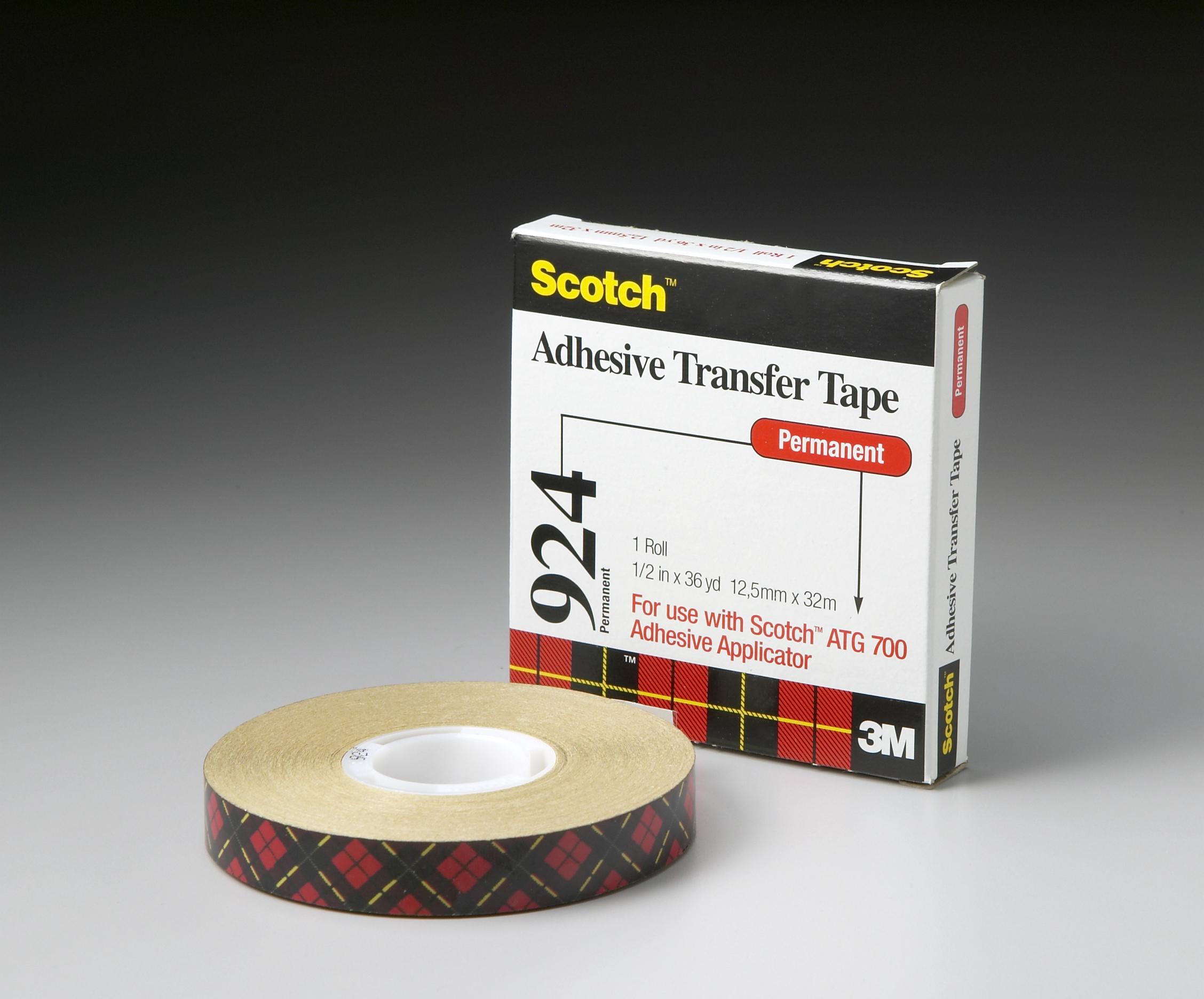 Designed for general purpose applications, our Scotch® ATG Adhesive Transfer Tape 924 bonds a wide variety of similar and dissimilar materials such as metals, glass, wood, papers, paints and many plastics. It offers high adhesion that creates a permanent bond, good solvent resistance and excellent UV resistance. The adhesive can stick to difficult, varied and textured surfaces, including areas with high humidity and exposed to sunlight. Reverse wound on 1-inch diameter core for use in Scotch® ATG Applicators.