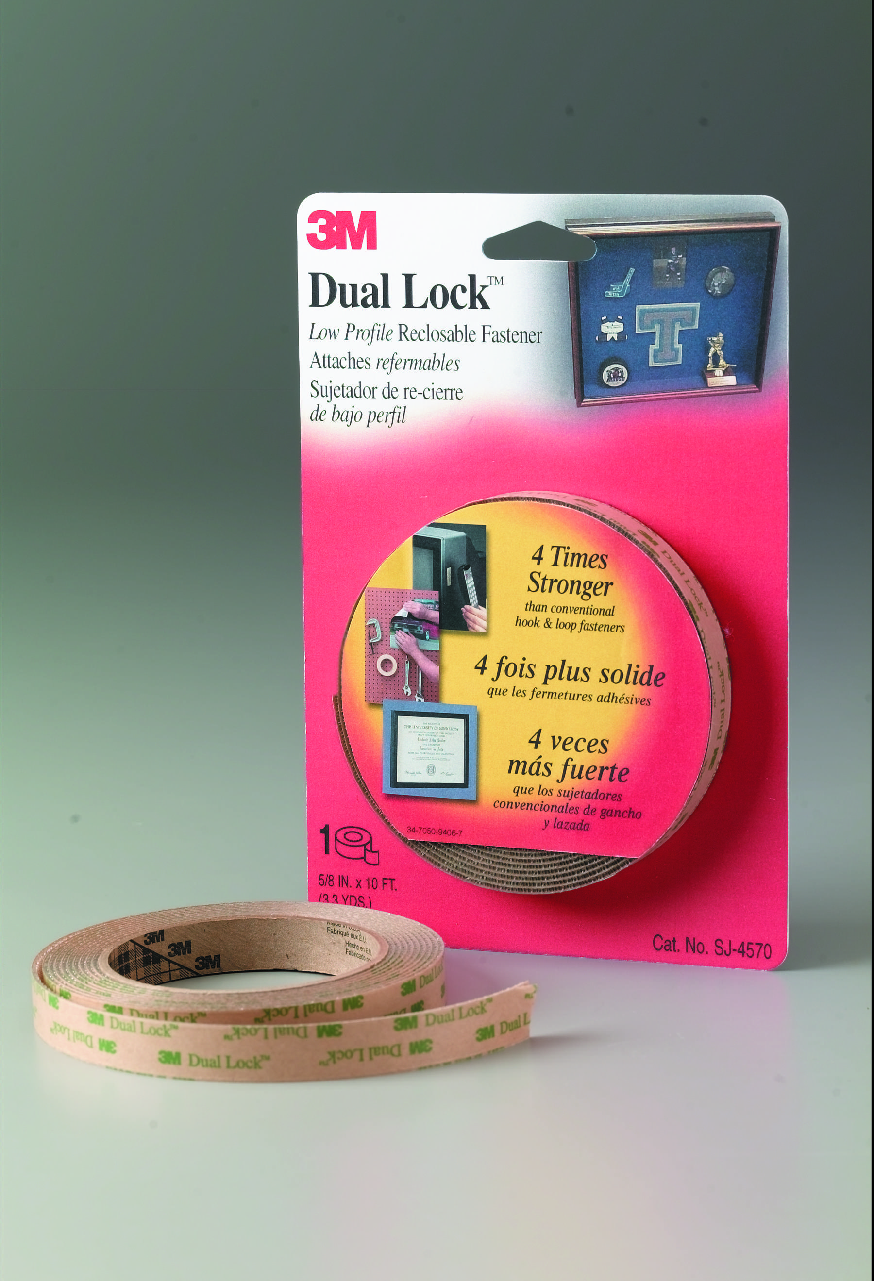 3M™ Dual Lock™ Reclosable Fastener SJ4570 Low Profile consists of interlocking mushroom-shaped heads that easily slide over each other, allowing for positioning of parts before being snapped together. This fastening process creates a durable attachment and provides fast product assembly with great design flexibility.