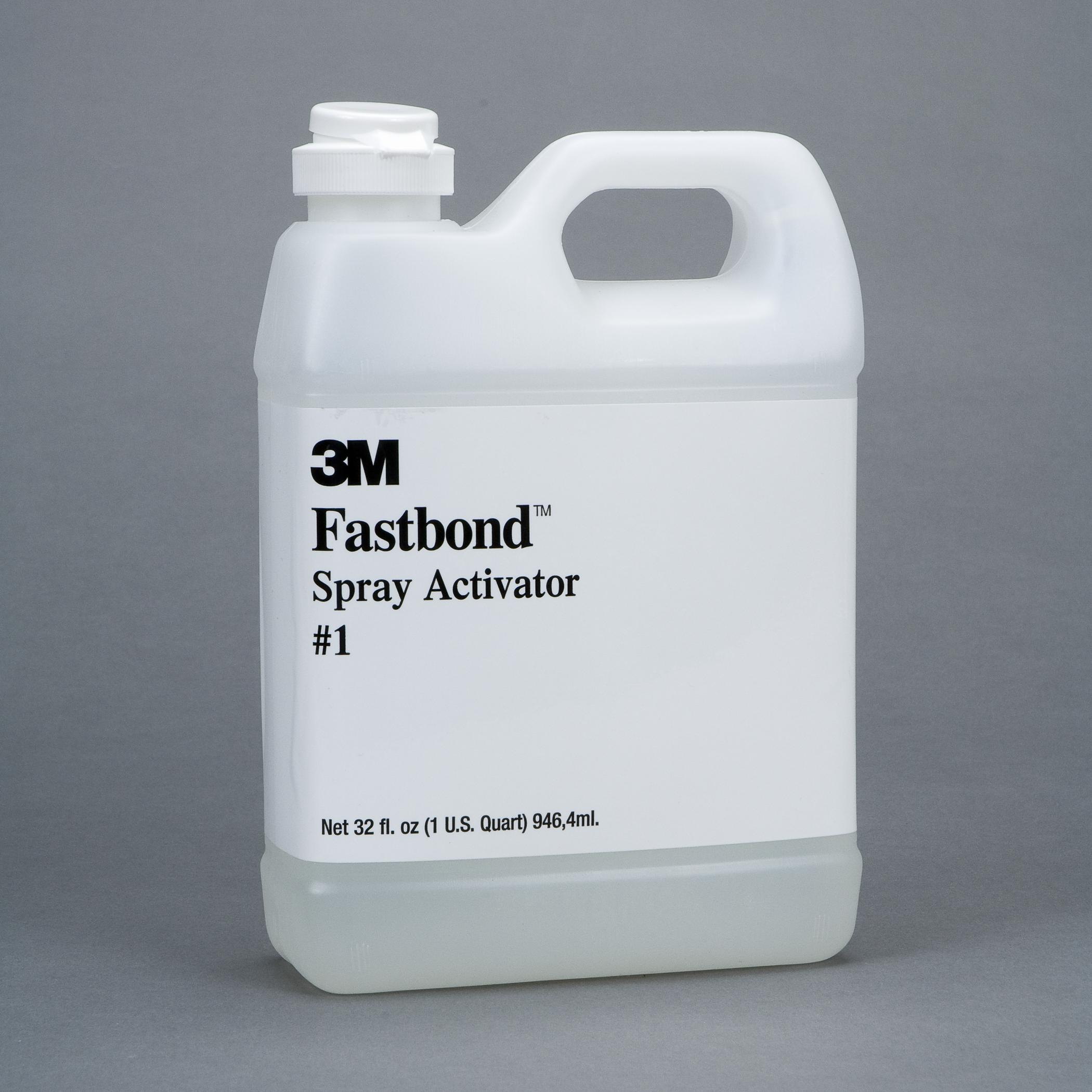 Additional Product Information: Water Based Spray Activator 3M™ Fastbond™ Spray Activator 1 is designed to be dispersed by mist for optimal application. It is available in various quantities, but remains easy to use, convenient and portable. Dispersal is managed through a spray delivery system that is very efficient while also reducing overspray. This high solids activator is water based, GREENGUARD™ certified, low VOC and LEED® compliant. Recommended Products 3M™ Fastbond™ Spray Activator 1 is designed to speed the adhesion process of the following 3M products: • 3M™ Fastbond™ 2000NF Adhesive • 3M™ Fastbond™ Contact Adhesive 30NF • 3M™ Fastbond™ Foam Adhesive 100NF