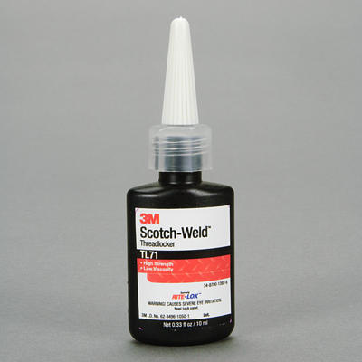 Our 3M™ Scotch-Weld™ Threadlocker TL71 is effective for locking, vibration resistance, sealing, and bonding threaded assemblies. Places where it is useful include machine tool access bolts, hydraulic system bolts, gear box/driveshaft bolts, bearing cover cap screws, countersunk screws and conveyor roller bolts.